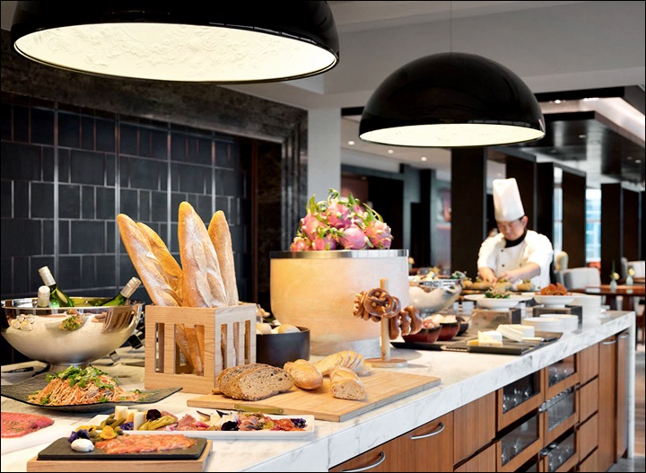 푸동 샹그릴라 호텔의 아침은 1층 다이닝 룸에서 이루어지는데요. 특히 버섯, 새우, 양파 원하는 재료를 담아 만드는 쌀국수를 기다리는 투숙객들이 많다고 합니다.